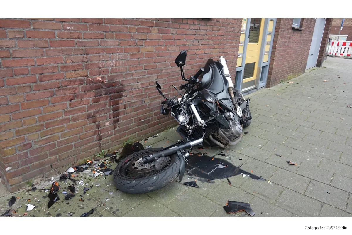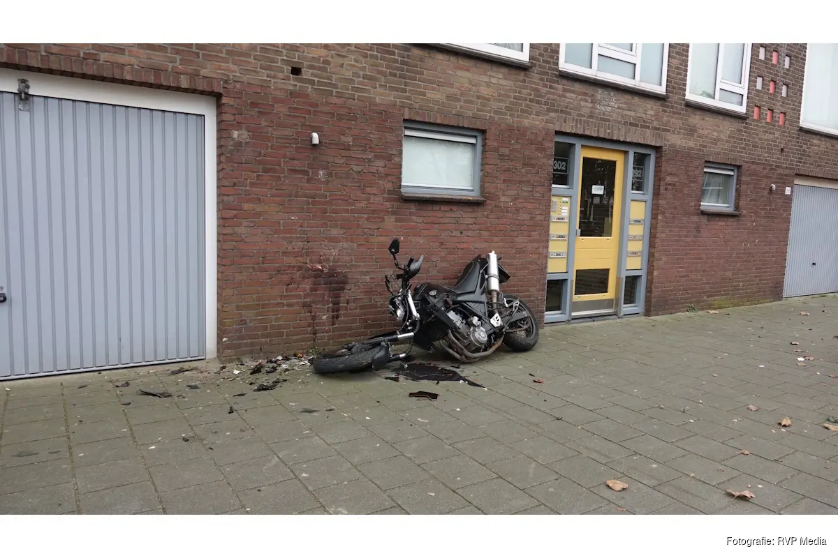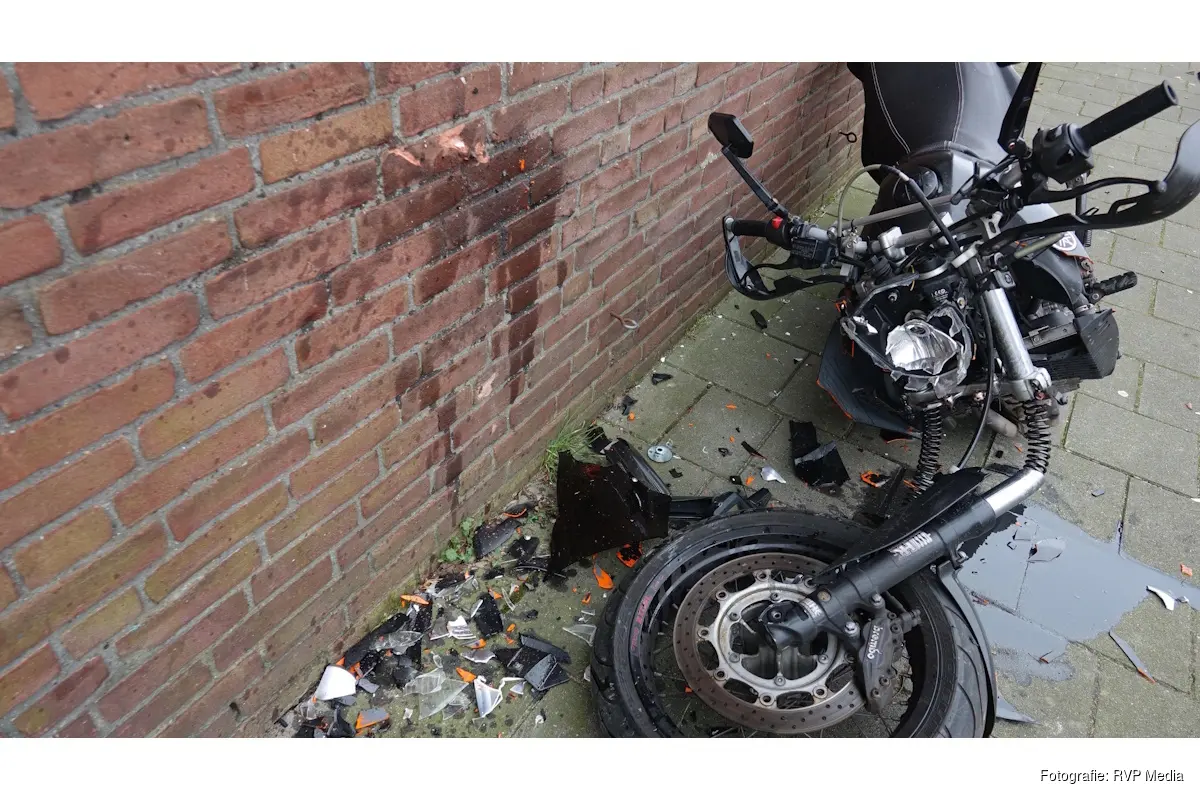 Een motorrijder is door nog onbekende oorzaak frontaal tegen de muur van een appartementencomplex gereden.